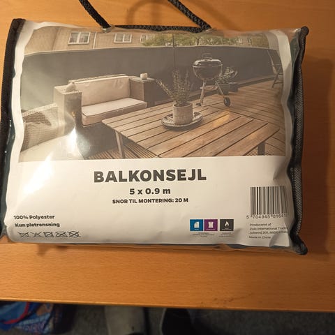 Sejlet er syet efter mål til montering på altanrækværk og giver afskærmning og indkigssikring. Det monteres på eksisterende gelænder og dækker hele altanens sider og front. Velegnet til brug på altaner, hvor der ønskes mere læ og privatliv. Materialet er tekstil med angivet lang holdbarhed i bestillingsoversigten på billedet.