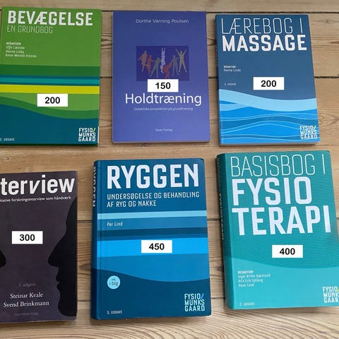 Studiebøger til fysioterapeutuddannelsen. I-bog udgave er anvendt på samtlige bøger.