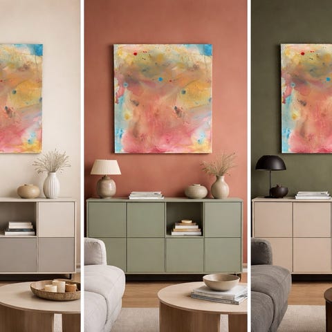 Bemærk at billede nummer 1 og 2 er udarbejdet vha chatGPT, dvs at maleriet er sat ind i “kunstige” omgivelser, for at kunne fremvise og visualisere det i flere forskellige settings og miljøer.