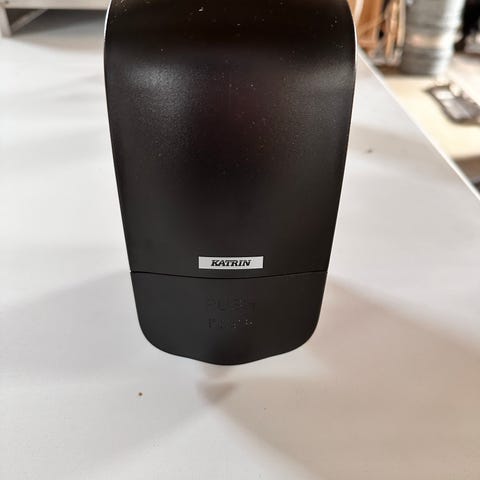 Sæbedispenser i plast med pumpe. Flasken er fremstillet i mørkegrønt plastik og er velegnet til flydende sæbe, lotion eller lignende produkter. Dispenseren kan bruges på badeværelse, køkken eller andre steder, hvor der er behov for dosering af flydende produkter.