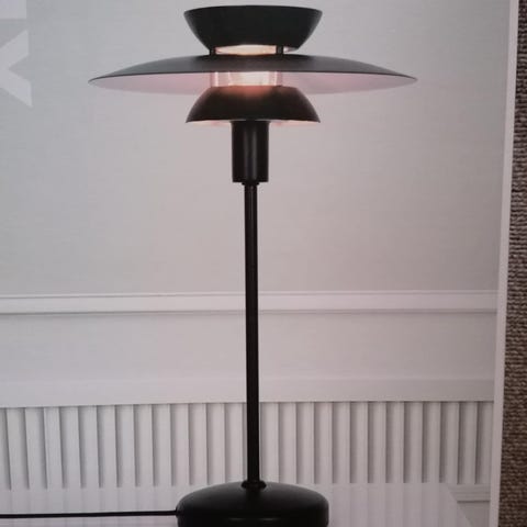 Helt ny lampe. Nordlux Ellen To Go bordlampe i sort farve. Lampen har en rund lampeskærm og en rund fod med en stilren, moderne design. Den er trådløs med genopladeligt batteri, hvilket gør den nem at flytte og bruge uden ledning. Lampen er designet til at give justerbar belysning med en maksimal lysstyrke på 300 lumen og en farvetemperatur på 3000K (varm hvid). Designet af Bruno Mathsson.