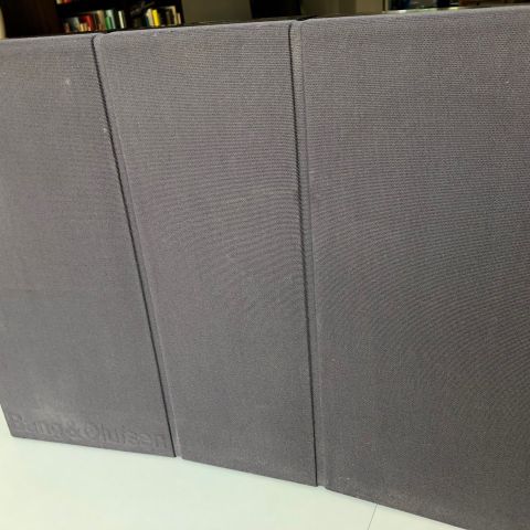 Bang & Olufsen Beovox “Red Line” højttalere i grå farve, type 6513. Fronten har tredelt panel med Bang & Olufsen-logo i nederste hjørne.