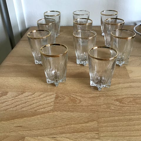 Glas, Likør og shot glas, 20 Stk. Likør og shot glas med logo i guld fra Reserveofficersforening i Danmark sælges samlet for 50,00 kr.