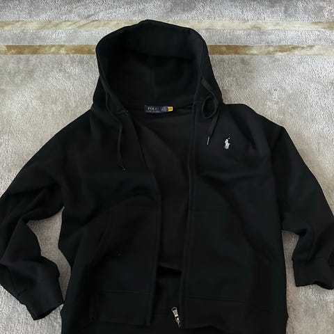 Ralf Lauren hoodie med lynlås, str L, mørk blå