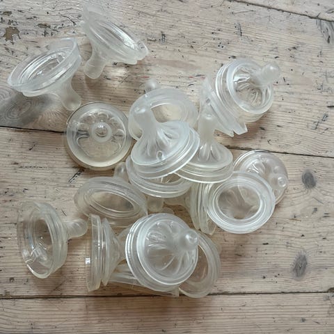Philips Avent Sutteflaskesutter i gennemsigtig silikone. Leveres i en større mængde samlet i en pose. Passer til sutteflasker med standard gevindåbning. Velegnet som ekstra- eller reservesutter til babyflasker. Materiale: silikone. Farve: klar/gennemsigtig.