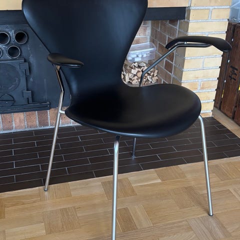 Sælger her 7 stk. af den klassiske Arne Jacobsen stol, model 3207 (7'eren med armlæn), produceret af Fritz Hansen.