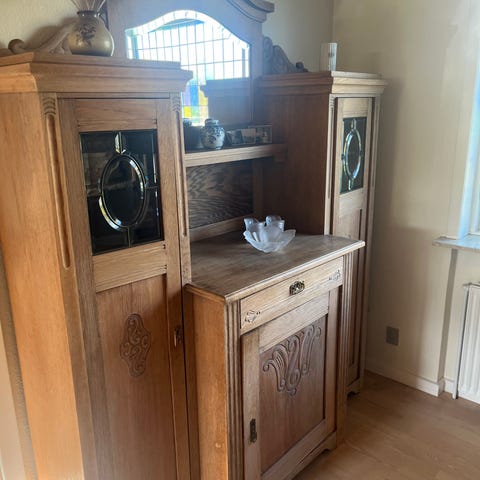 Chatol med skrivebord og vitrine-overdel