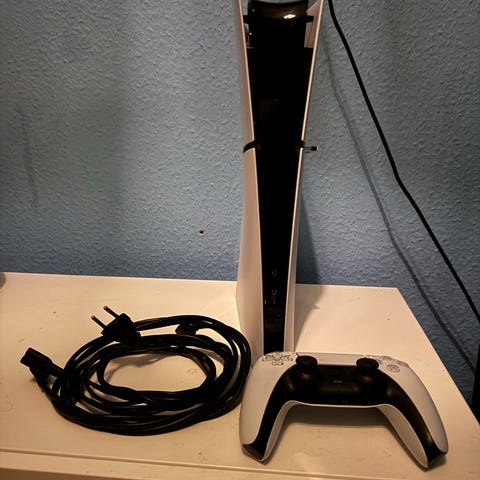 Helt ny og uåbnet Sony Playstation 5, 825 GB Digital Edition konsol i hvid.