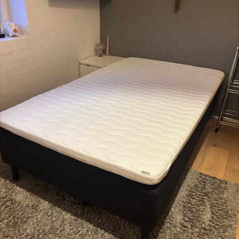 Den er kun blevet brugt med topmadras og lagen. Sengen er derfor god.