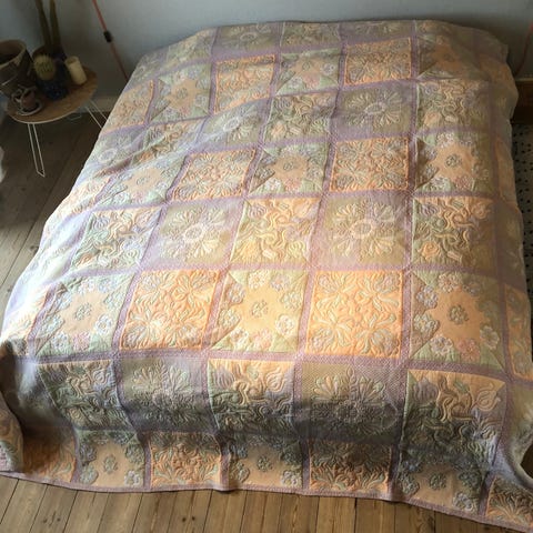 Sengetæppe 270 x 245 Fransk vintage håndsyet quiltet sengetæppe, Vendbart