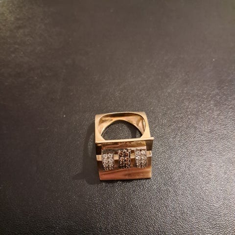 Stor 14 k guld ring med grøn sten