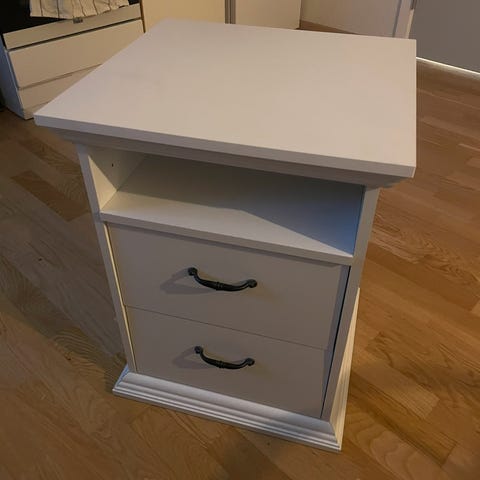 Hvid natbord med skuffe og hylde