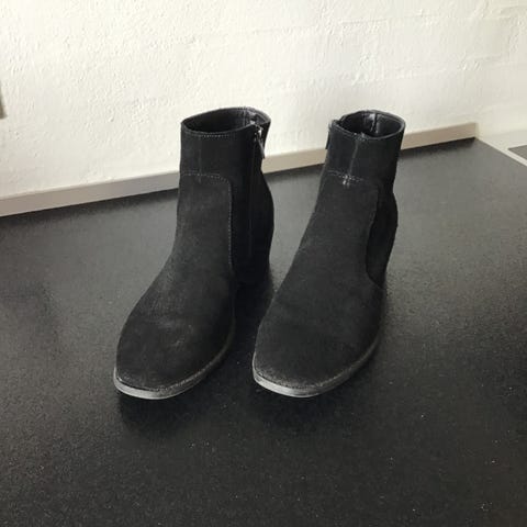 Esmara støvler i størrelse 39. Ankelhøje støvler i sort med elastikpaneler i siderne og hælstrop bagtil. Glat overflade og lav hæl, egnet til hverdagsbrug. Neutral stil, der kan bruges til forskellige outfits.