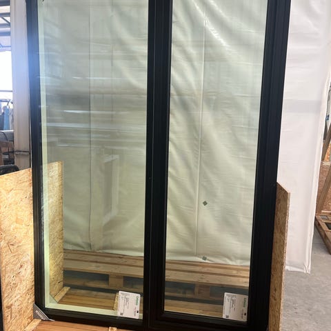 Nye Rationel vinduespartier, mål bxh 208,8 x 98,8 cm. træ/alu Ral 9005 sort udvendigt og Ral 9010 hvid indvendigt, 3-lags glas med sidehængt oplukkelig vindue. 2 stk. Helt nye. Prisen er pr. Stk.