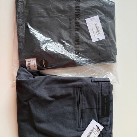 Model: Essential Suit Pants. Bukserne er str. 30/30. De er slim fit og har pressefold.