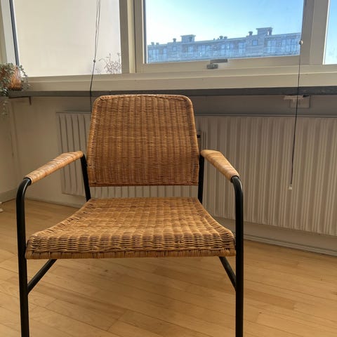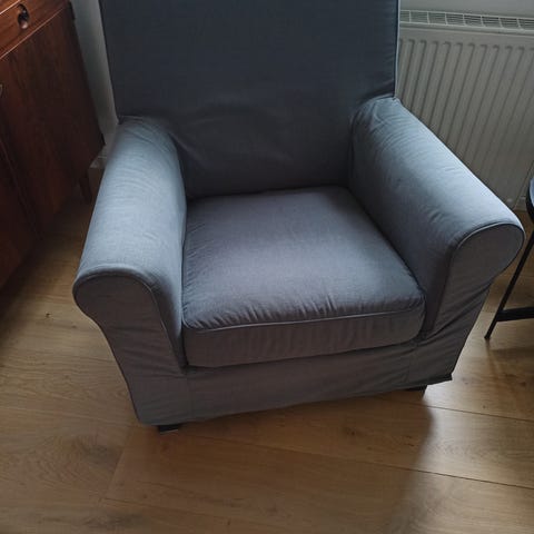 Betrækket trænger til en vask, men ellers er stolen i fin stand.