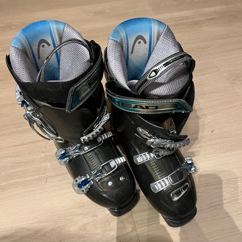Head Edge skistøvler i hvid med grå og lyse detaljer. Modellen har fire justerbare spænder og powerstrap øverst for bedre tilpasning om benet. Inderstøvlen er polstret for komfort og støtte. På skallen fremgår flex 65. Velegnet som alpinstøvle til brug på pisten.