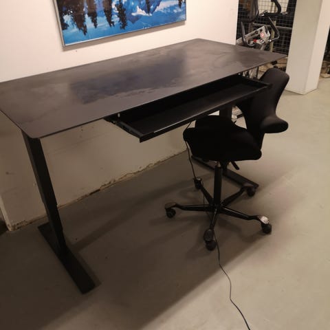 skrivebord + stol + skærmopsætning