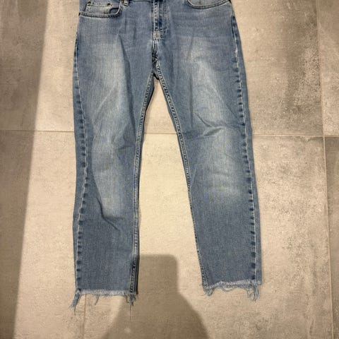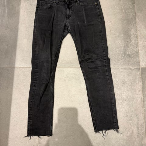Jeans fra Won Hundred. Str. 31/32. På højre knæ er et fabrikeret hul, hvor nogle af trådene på tværs er blevet revet over i forbindelse med almindelig brug. Ellers fejler de ikke noget.