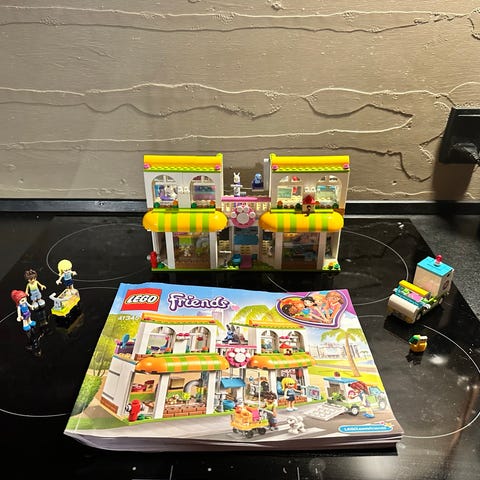 Et fint lego friends sæt . Er kun samlet 2 gange tror jeg . Den eneste fejl er af den mørkegrå brik brugt som lampe som men kan se på et af billeder skulle havde været lysegrå men det er den samme brik bare en mørkere farve ellers er alle brikker der 👏🏻