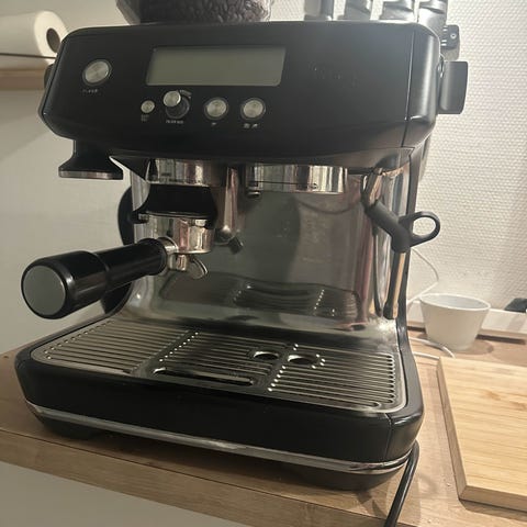 Sage espressomaskine i rustfrit stål med integreret kværn. Maskinen har damparm til opskumning af mælk og drypbakke med opbevaringsrum til tilbehør. Medfølgende tilbehør omfatter portafilter, flere filterkurve, tamper, mælkekande i rustfrit stål samt beholder til kaffegrums. Velegnet til brygning af espresso og mælkebaserede kaffedrikke i hjemmet.