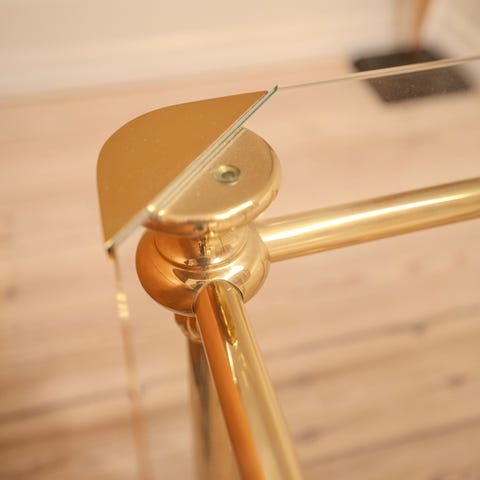 98x98 cm Glas Sofabord med metal ben i rigtigt fint stand.