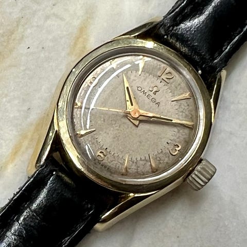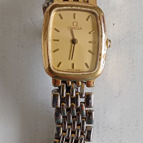Omega dameur, alder ukendt men fra før 1970, lænken er ikke guld, jeg ved ikke om huset er, urværk virker ikke, kom med et bud