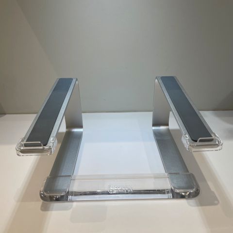 Fungerer utrolig godt selvom det er smalt og letvægt, kan holde en laptop og en tung bog uden problemer. Der er er gode skridsikre gummidutter på hjørnerne, så det ikke ridser bordet og står godt fast.