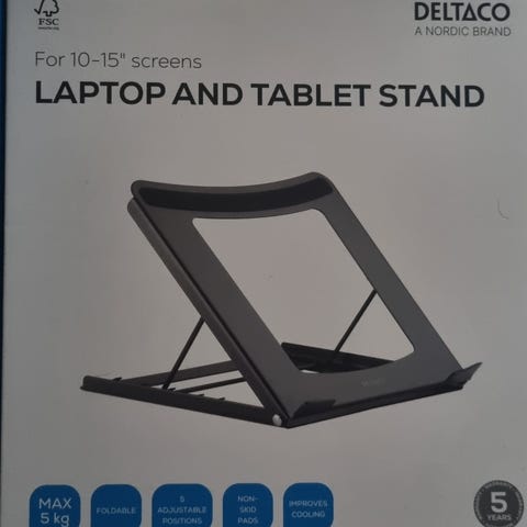 Kan holde laptop og papir/bog og indstilles til forskellig højde. Nemt og let at have med i tasken, har A4-størrelse.