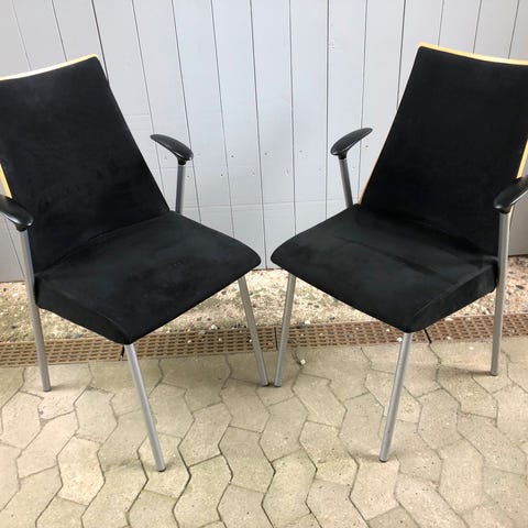 Brugte, med lidt skrammer i kanterne - super flotte stabelstole