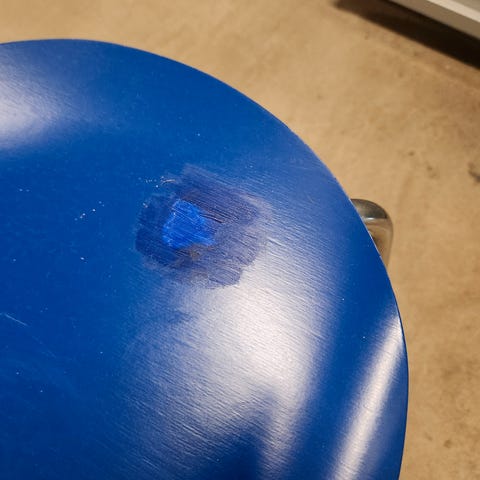 Sælger disse 4 konge blå spisebords stole, de er i velour stof med guld ben.