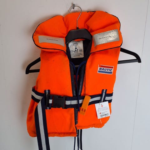 Ocean Pro EN 395-100N. Produktet er en sikkerhedsvest med hætte. Den er lavet af holdbart materiale i signalfarve. ,Afhentes i:,Røde Kors Bellinge (461),Bemærk at mail, chat og beskeder ikke besvares, og varen skal købes på knappen "Gå til varen"