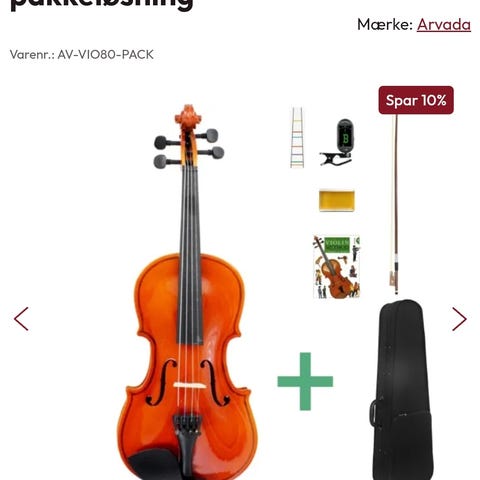 Violin i hvid farve med sort gribebræt. Leveres i blødt etui med lynlås og bærehåndtag. Velegnet til øvning og transport af instrumentet. Der er sprunget en streng, men der følger nogen med og der mangler en bue