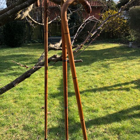 Antik herrewandestok fra Storbritannien (ca. 1910–1930), i Arts & Crafts-stil med træskaft, geometriske inlæg i hvid metal på den buede håndgreb, en beskyttende metalske, og i god antik tilstand med en højde på 91 cm. Klik på den blå "gå til varen" knap, for at købe eller byde på denne vare. Den samlede pris vil blive vist inden du afgiver dit bud.