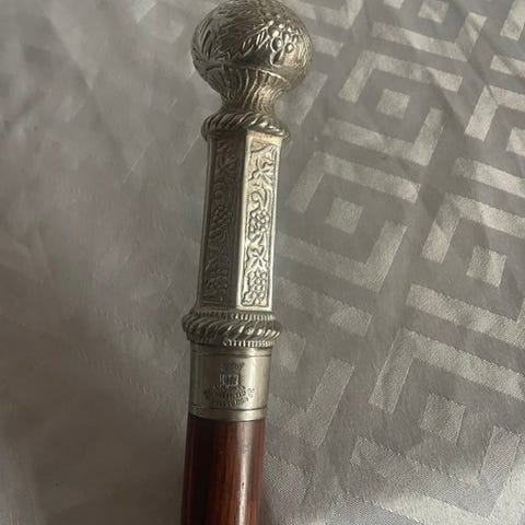 Elegant herregårdsvandrestav dateret til det tidlige 1900-tal (cirka 1910–1930), der viser stilistisk indflydelse fra Arts & Crafts-bevægelsen med tidlige Art Deco-elementer.