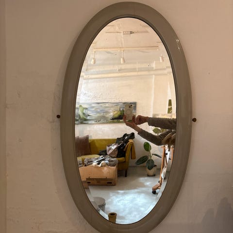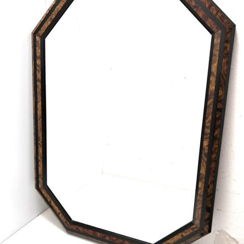 Et spejl i relieframme af glas og træ fra Nederlandene, dateret 1970–1980, i god brugt stand med få tegn på alder og pletter; ydre mål 67 × 46 cm, indre mål 53 × 32 cm, spejlet er facetglasset. Klik på den blå "gå til varen" knap, for at købe eller byde på denne vare. Den samlede pris vil blive vist inden du afgiver dit bud.