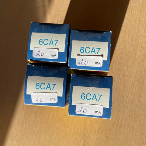 7027A JJ radiorør, udmålt kvartet, helt nye, og i originale æsker