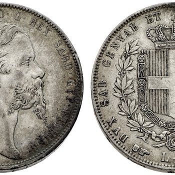 Italien, Kongerig Vittorio Emanuele II. 5 Lire 1865 Torino