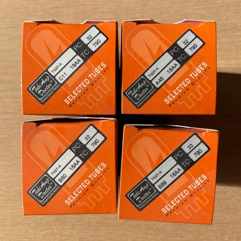 Udmålt sekstet dvs 6 ens 7027A radiorør JJ, helt nye og i originale æsker