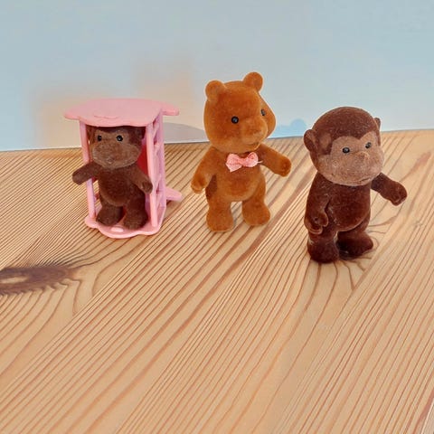 Disse hjemme hæklede bamser er lavet af acryl og uld og vat som fyld og er helt nye de er 12 cm høje