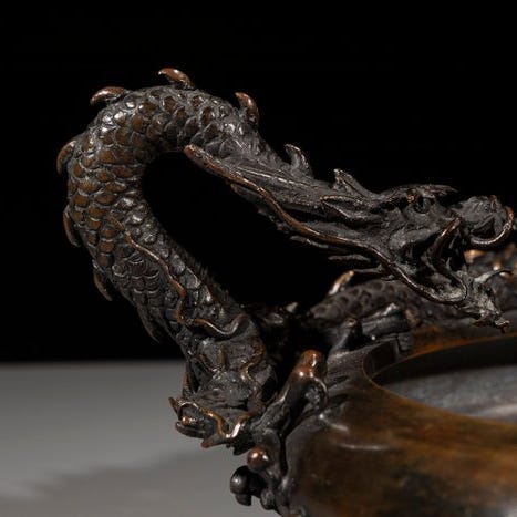 Bronzecensers fra Heian, dateret til 1931 (Showa 8) med sølvindlagt paulownia-mon, underskrevet i bunden, inklusive et signeret og forseglet tomobako, mål: 6,6 cm høj og 10,5 cm x 10,5 cm. Klik på den blå "gå til varen" knap, for at købe eller byde på denne vare. Den samlede pris vil blive vist inden du afgiver dit bud.