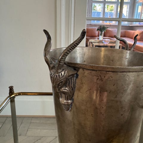 Windsor Collection sølvbelagt champagnekøler, fremstillet af English Sheffield Co. i Storbritannien (Sheffield), circa 1970–1980, dimensioner 22,5 × 19 × 19 cm, i god stand med mindre tegn på alder. Klik på den blå "gå til varen" knap, for at købe eller byde på denne vare. Den samlede pris vil blive vist inden du afgiver dit bud.
