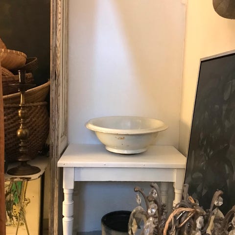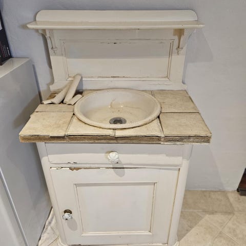 Træ- og porcelænsservant, model Wastafel - standaard met waskom, fra Europa, i god brugt stand med mindre tegn på alder og små pletter; dybde 46 cm, højde 84 cm, bredde 82 cm; estimeret periode 1950-1960; leveres afmonteret og sendt forsikret. Klik på den blå "gå til varen" knap, for at købe eller byde på denne vare. Den samlede pris vil blive vist inden du afgiver dit bud.