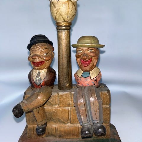 Syv italienske Anri-figurer, håndlavet træsnit, Sydtirol af Anton Riffeser, siden 1912. Den store med flaskeåbner og proptrækker, de andre med kun flaskeåbner plus 3 propper, flaskeåbner og en lille charmerende figur. Disse findes nær Gent.
