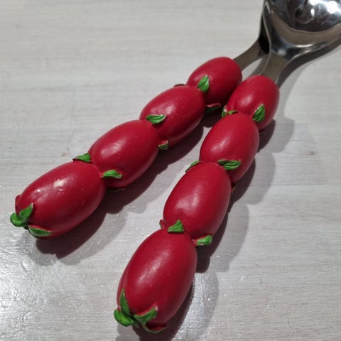 Et stativ til to marmeladekrukker med fire grønne endehætter.