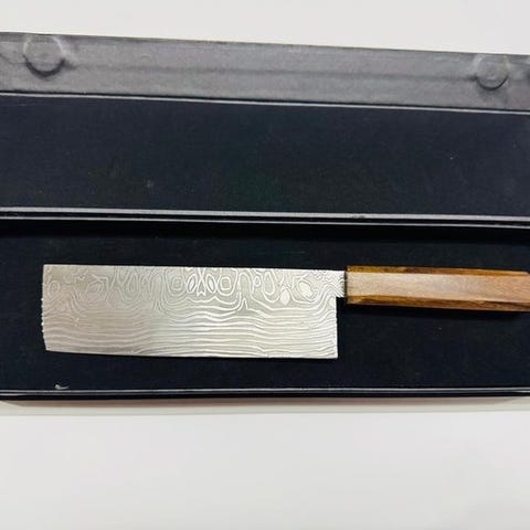 Et praktisk og visuelt iøjnefaldende køkkenkniv, der er egnet til kulinarisk brug eller som en del af en moderne knivsamling.