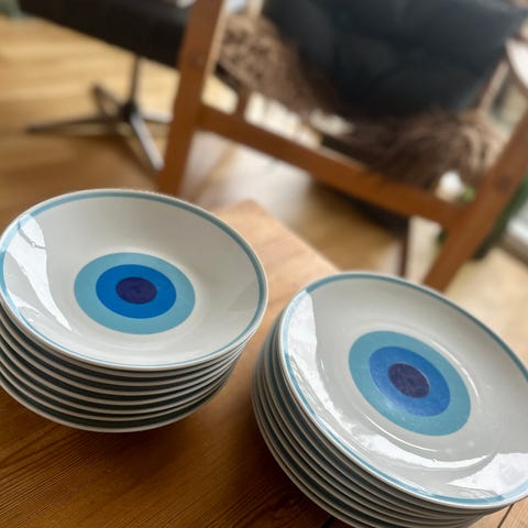 Den består af 16 flade tallerkener med en bredde på 24 cm.