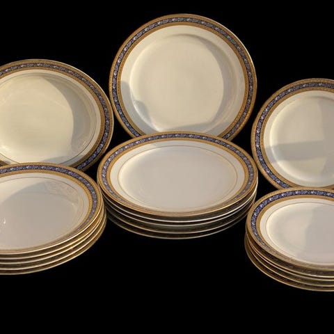Det klassiske design med detaljer i guld og blå er almindeligt i flere europæiske manufakturer, især de bayerske som Winterling, Alboth & Kaiser eller Johann Seltmann.