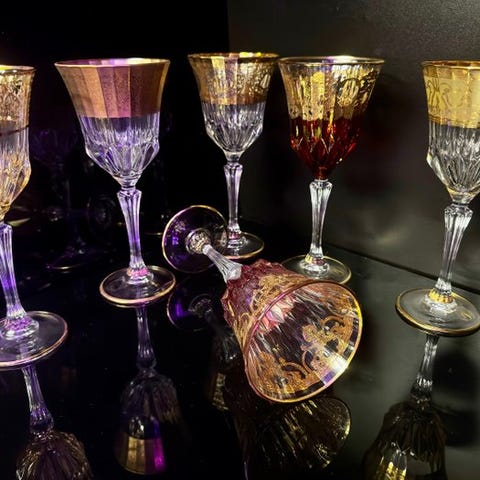 Smelt dig ind i dette varme arabeske dekoration i kontrast mellem blankt og mat guld og rige penselstrøg af rent guld. Udført hele vejen rundt med et sofistikeret pantograf-dekor opstår dette tallerken/centerstykke, der passer godt til mange daglige anvendelser. Server en frisk salat, en særlig forret, småkager eller bagværk, brug det som du foretrækker, eller lad det være helt tomt; det vil altid have sin fulde fascinationskraft mellem elegance og luksus. Kristallet tegner et smukt objekt, men håndværket hos vores håndværkere gør det til et mesterværk af absolut skønhed og magi.