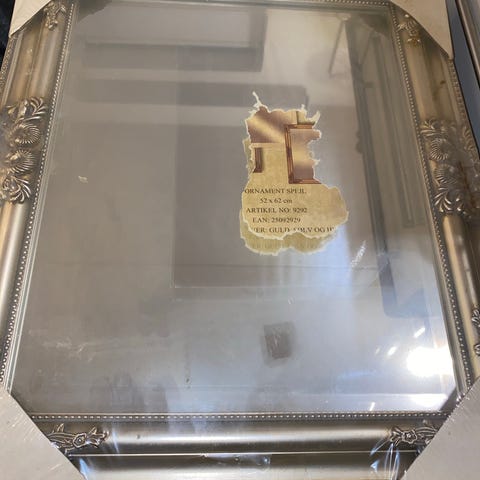 &Tradition spejl med dekorativ ramme i hvid og guld. Rektangulært spejl med udskårne ornamenter og figurdetaljer øverst på siderne. Rammen har klassisk udtryk med blomster- og perledekorationer. Velegnet til ophæng eller opstilling i entré, stue eller soveværelse som både spejl og dekorativt interiørelement.